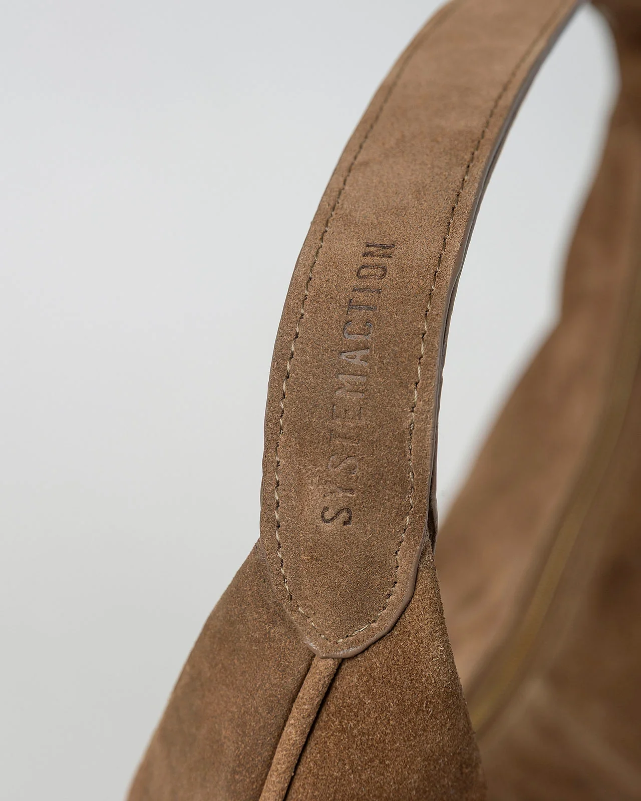 Bolso de serraje de tamaño mediano con cremallera. Asa corta.