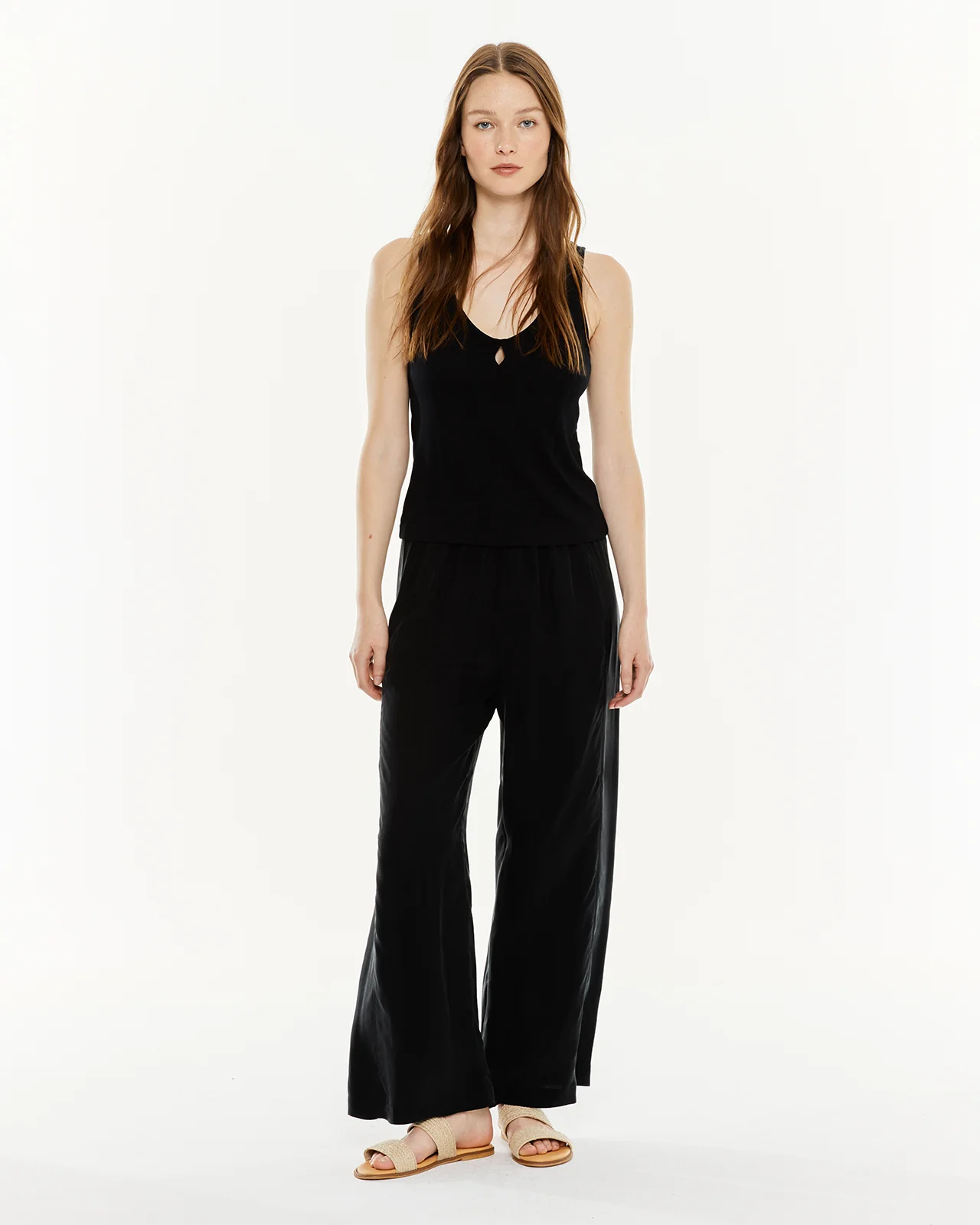 Top de mujer de tirantes con frunce en el pecho. Prenda sostenible.